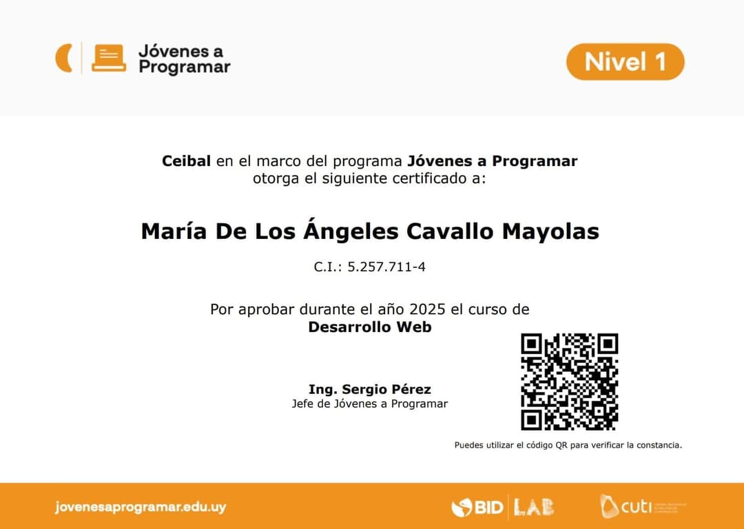Jovenes a Programar certificada por Ceibal